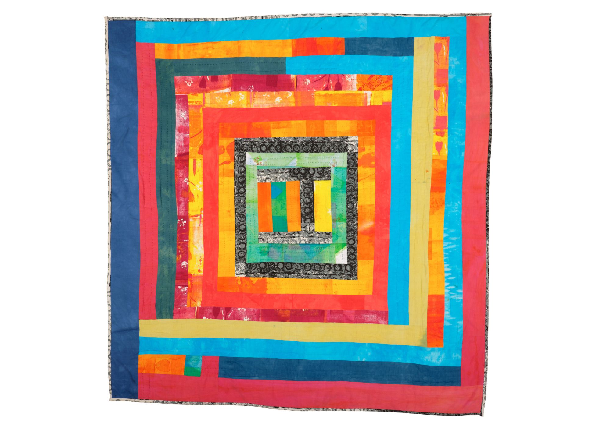 This quilt echoes a design by the artist Ben Nicholson, moving away from his colours towards the edges of the quilt.